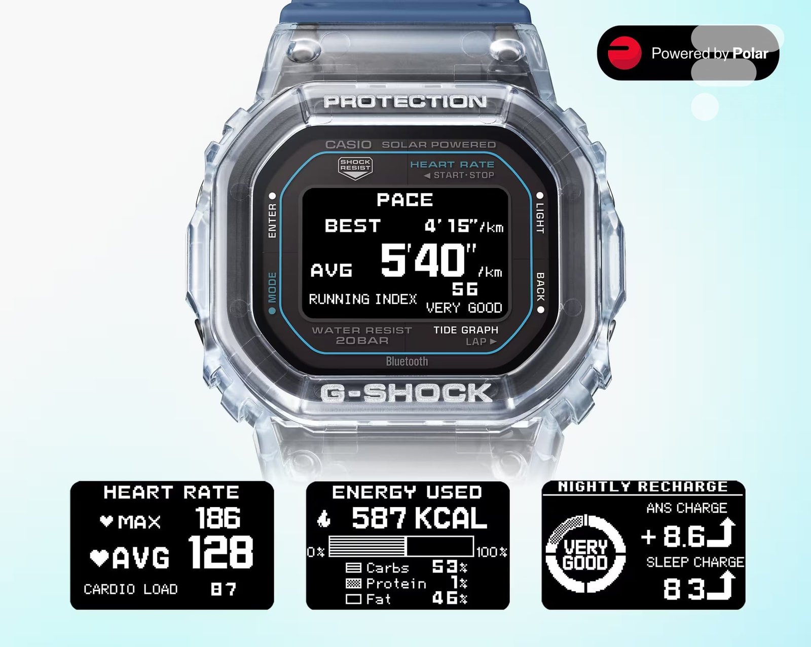 A Casio confiou a análise dos dados à finlandesa Polar, já parceira dos modelos DW-H5600 e GBD-H2000 desde 2023.