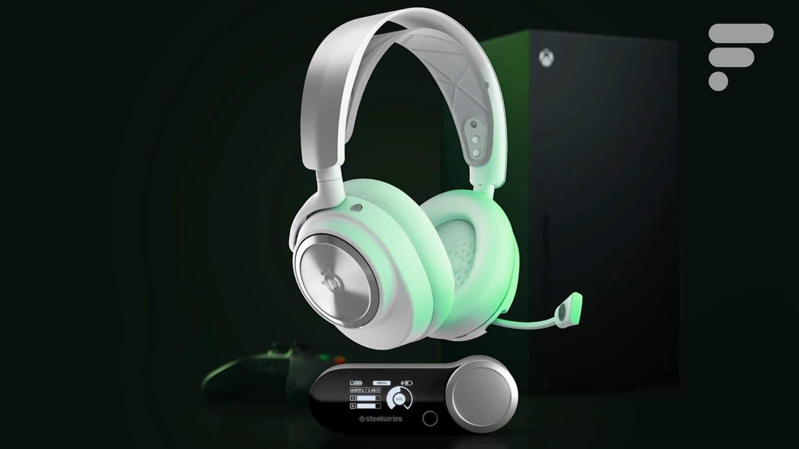 O SteelSeries Arctis Nova Pro Wireless se destaca por ser um fone de ouvido de última geração que oferece um sistema de conexão híbrido bastante engenhoso. É por isso que a marca o oferece em três versões: para PC, PlayStation e Xbox. Aqui, é este último que está em causa. Ele vem com uma estação base equipada com duas portas USB-C, incluindo uma dedicada ao Xbox, bem como uma entrada/saída mini jack de 3,5 mm. Ele também oferece uma conexão sem fio Quantum 2.0 a 2,4 GHz, bem como Bluetooth 5.0.