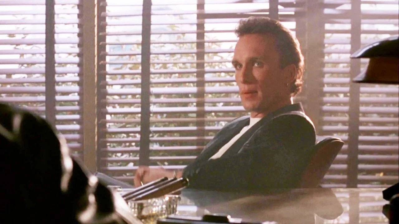 Porém, se a comédia é especialmente boa pelas travessuras de seu ator principal, ela também pode se orgulhar de apresentar um vilão absolutamente memorável: Dorian Tyrell. Este último é interpretado pelo falecido Peter Greene, que nos deixou prematuramente no dia 12 de dezembro, aos 60 anos.