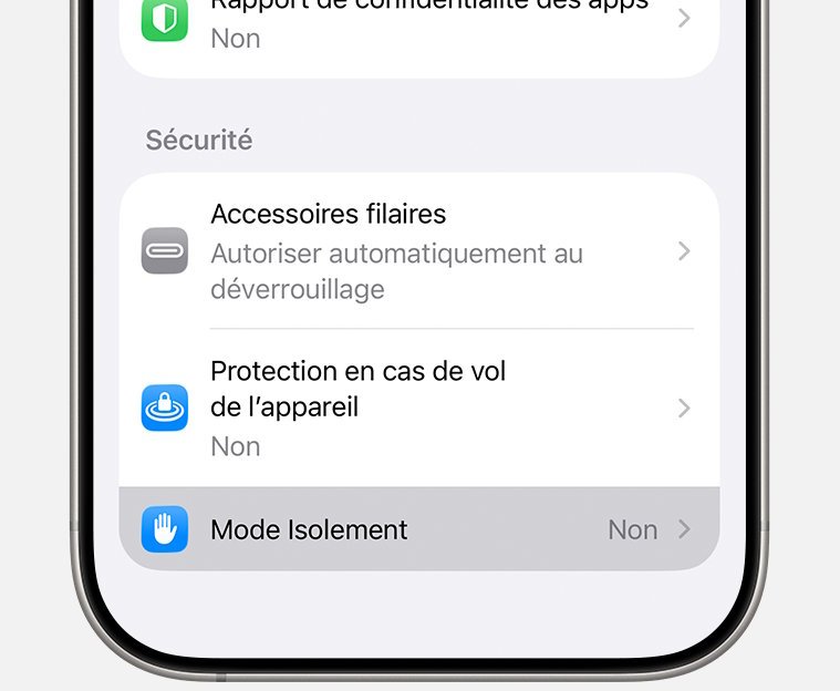 Com iOS 16 e macOS 13, lançados em 2022, Maçã adicionou um novo recurso a iPhones, iPads e Macs para garantir segurança máxima. Este é o modo de isolamento (Modo de bloqueio). O objetivo é proteger o dispositivo contra agentes maliciosos e malware, reduzindo a superfície de ataque. Claramente, isto é um compromisso: certos recursos são limitados ou desativados para melhorar a segurança.