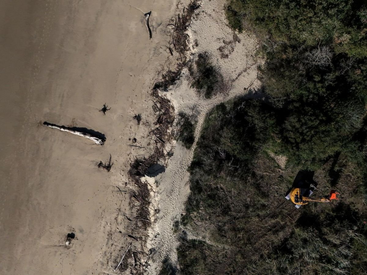 “Devemos cortar e evacuar as árvores para proteger os utentes, porque ameaçam cair na praia“, explicou Samuel Gendrillon, técnico florestal do Escritório Nacional de Florestas (ONF), no dia 4 de março de 2026, durante coletiva de imprensa em frente à duna.”totalmente destruído por sucessivas tempestades“.