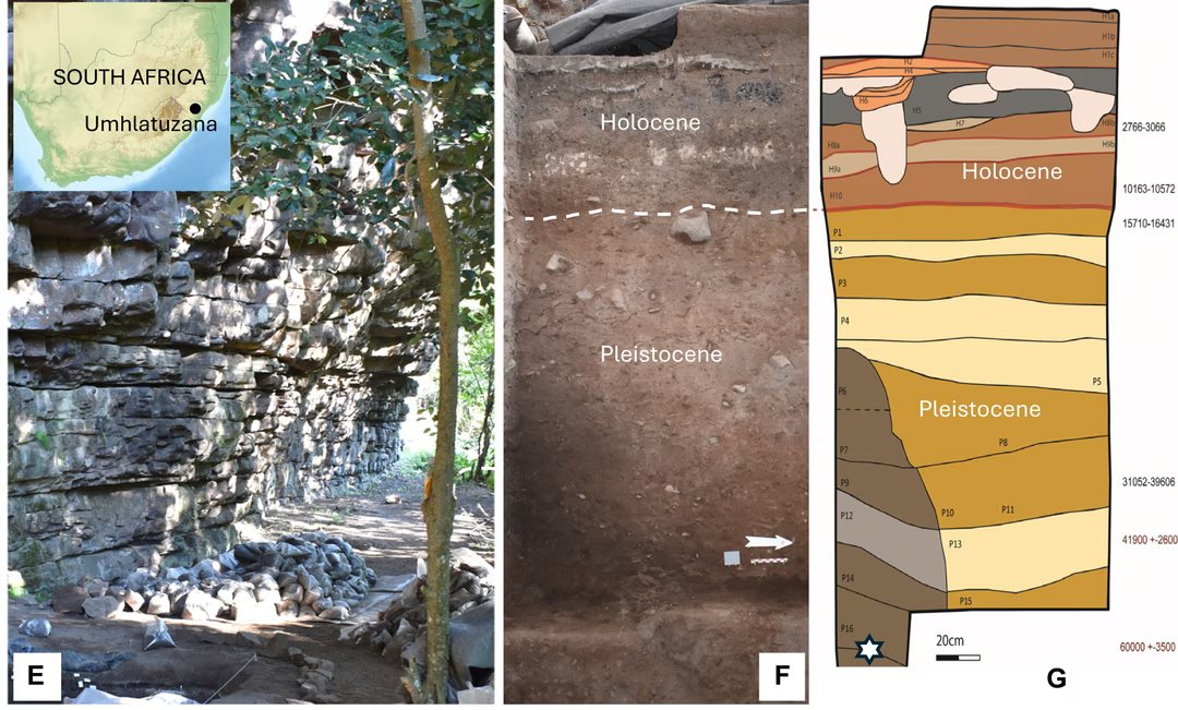 Localizado na província de KwaZulu-Natal, na África do Sul, o abrigo rochoso Umhlatuzana é um importante sítio arqueológico. Ocupada repetidamente durante quase 100.000 anos, oferece uma estratigrafia notável, onde níveis sucessivos testemunham a evolução do comportamento humano a muito longo prazo.