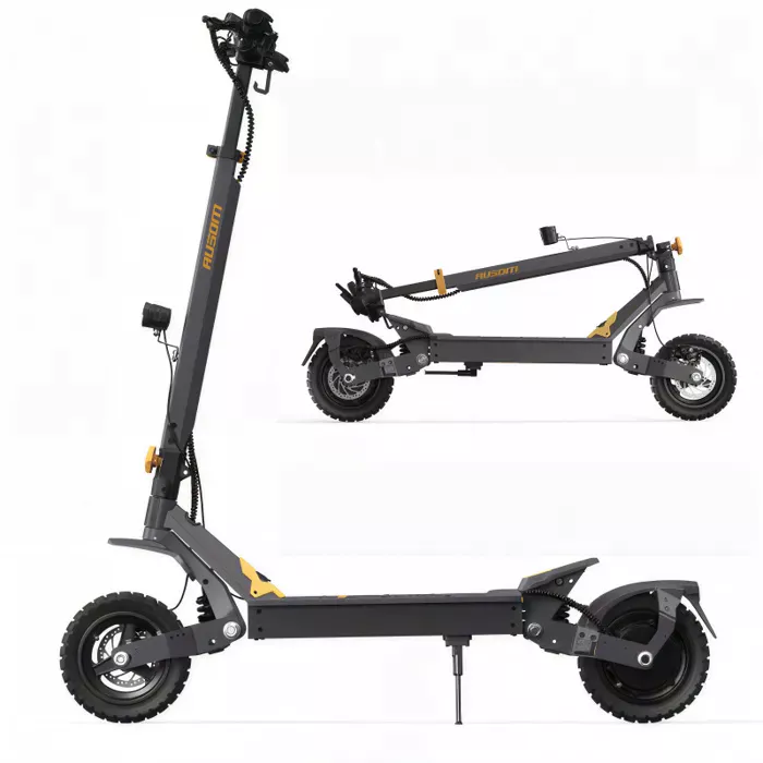 A scooter elétrica Ausom L1 não é um simples gadget urbano. A sua arquitetura técnica destina-se a utilizadores com longas viagens a realizar ou que pretendam explorar caminhos variados. O coração desta máquina é o seu motor de 1100 W, uma potência impressionante que lhe permite enfrentar subidas e superfícies mais exigentes sem medo. Juntamente com a sua bateria de grande capacidade, este motor abre caminho para grandes viagens diárias ou passeios de lazer prolongados, reduzindo significativamente o risco de falha da bateria. A estabilidade e o conforto, essenciais em longas distâncias, são garantidos pelos grandes pneus tubeless de 10 polegadas e pela suspensão do braço oscilante, configuração que absorve as imperfeições da estrada e proporciona uma condução tranquilizadora, mesmo a altas velocidades.