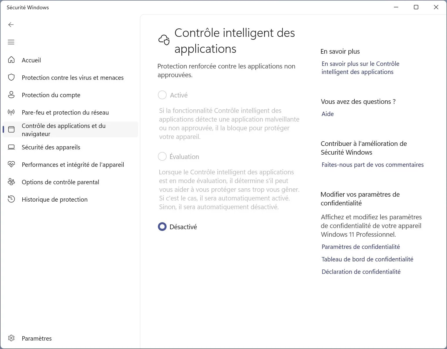 Controle de aplicativo inteligente do Windows 11 4