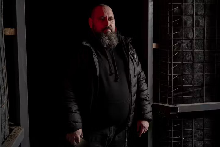 Oleksandr, assessor de imprensa do DSST, um dos dois ramos da engenharia militar ucraniana, na região de Zaporizhia (Ucrânia), 27 de janeiro de 2026.