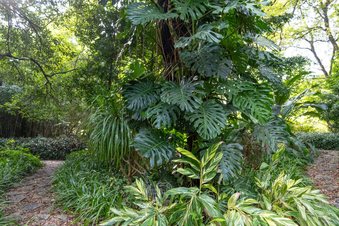 Comumente chamado de filodendro de folhas cortadas, embora não seja um deles, o Monstra deliciosa é uma trepadeira que se agarra graças às suas raízes aéreas ao longo da árvores. Em seu estado natural, prospera em florestas tropicais e pode atingir cerca de vinte metros de altura.