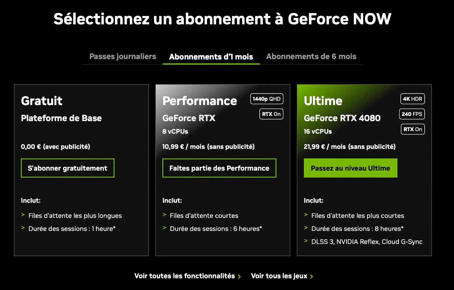 Os jogadores mais ávidos que ultrapassarem a marca das 100 horas poderão, no entanto, continuar a jogar nas melhores condições da sua subscrição GeForce Now, adquirindo pacotes adicionais de 15 horas, ao preço de $2,99 para Performance, ou $5,99 para Ultimate. Porém, você deve ter em mente que 100 horas por mês representam mais de 3 horas de jogo por dia: para muitos jogadores, isso já é muito!