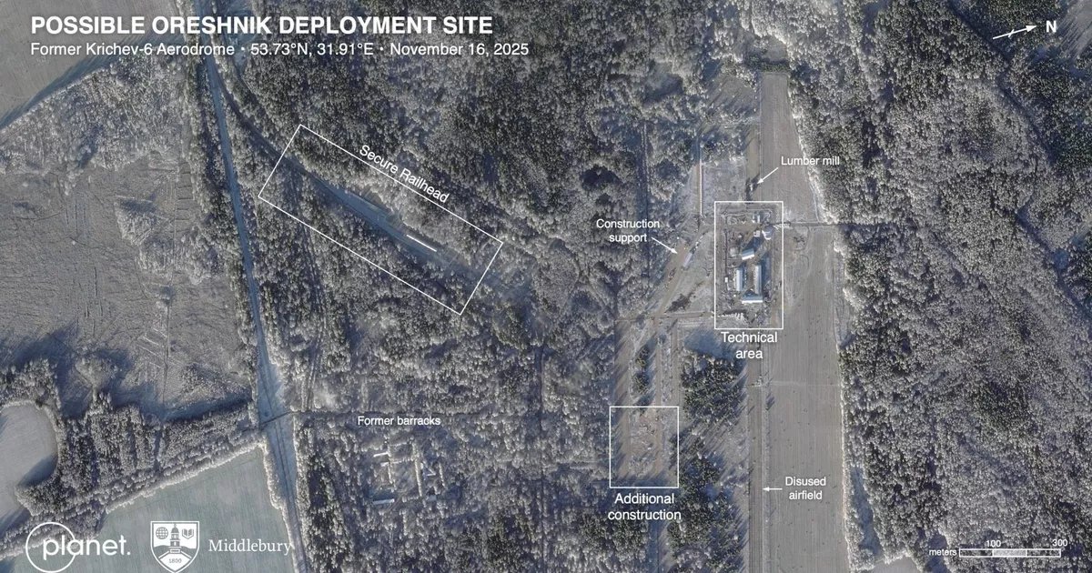 Alexander Lukashenko confirmou na semana passada que os primeiros mísseis foram lançados, sem especificar a localização exata, e que um máximo de dez Oreshnik poderiam estar baseados no país. Investigadores americanos estimam que o local identificado possa acomodar apenas três lançadores, sugerindo que outros seriam posicionados em todo o resto do território bielorrusso. Entretanto, o presidente dos EUA, Donald Trump, procura um acordo com Moscovo para pôr fim à guerra na Ucrânia, ao mesmo tempo que resiste, por enquanto, às exigências de Kiev de entregar mísseis de cruzeiro Tomahawk capazes de atingir Moscovo. O Reino Unido e a França já forneceram mísseis de cruzeiro à Ucrânia.