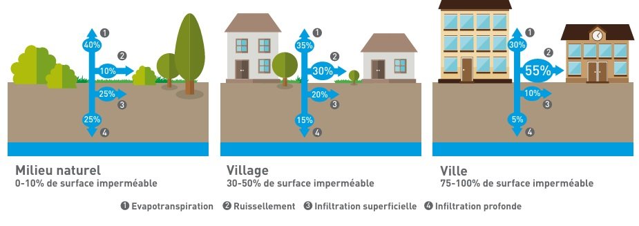 “ Em França, gerimos a questão dasaneamento água e pronto », lamenta Clément Gaillard, doutor em urbanismo. Nossas cidades e nossas estradas não foram projetadas para um dia serem confrontadas com riscos inundações. A forma como os concebemos, mas também os materiais utilizados, não estão adaptados aos fenómenos chuvosos extremos que atingem o país há vários meses. Para combater as inundações, existe de facto uma regra de ouro: “ Tudo o que cai num terreno deve infiltrar-se na terra “.
