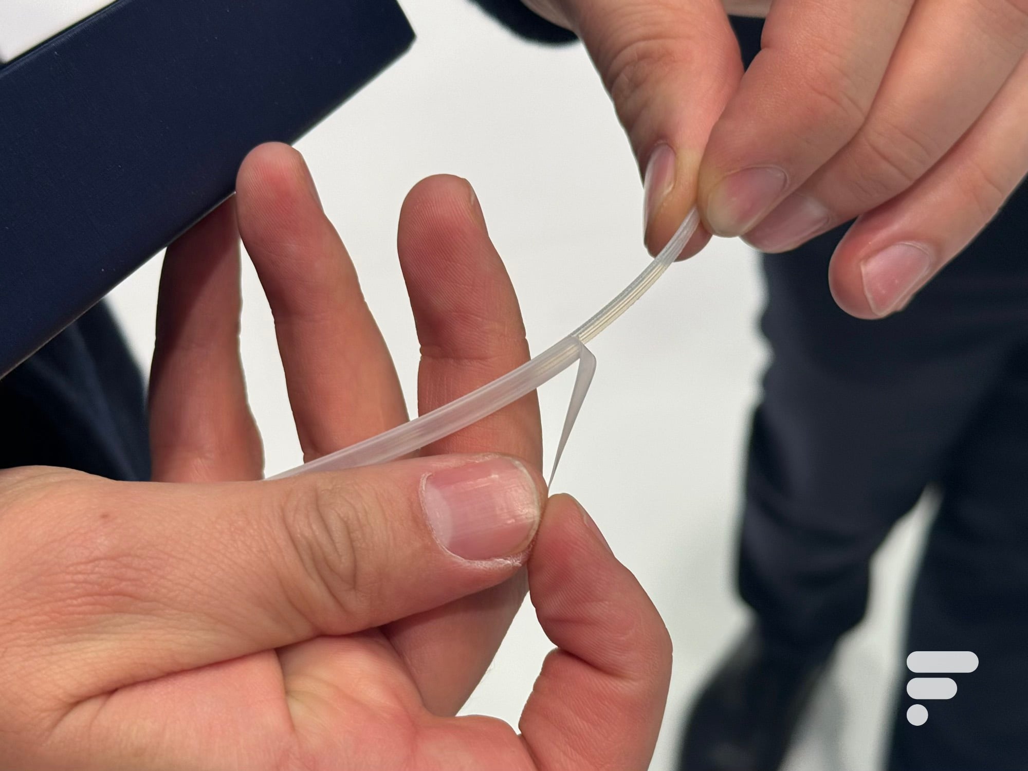 O verdadeiro destaque é esta fibra transparente de 1,2 mm. É revestido com um adesivo que se fixa aos rodapés ou paredes com uma pequena ferramenta dedicada. É quase invisível. Huawei anuncia latência de transferência de roaming inferior a 10 ms. Resumindo, você vai da sala para o quarto durante uma videochamada ou uma partida de cloud gaming sem a menor interrupção.