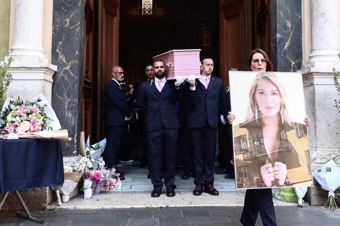 O caixão rosa adornado com um coração de prata foi carregado por funerárias usando gravatas rosa e flores brancas nas lapelas na frente de sua mãe. “Peço a Marie que cuide do meu filho. Nunca cortamos o cordão umbilical. Vou te encontrar de novo, minha Miette, você continuará sendo minha Miette”começou Violette Petrucciani.
