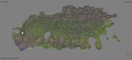 Modelo 3D preliminar dos destroços do Dannebroge mostrando as pedras de lastro expostas. A pilha de lastro mede mais de 28 metros de comprimento, 12 metros de largura e vários metros de altura. Podemos ver a estrutura do navio sob o lastro. O modelo 3D foi criado a partir de cerca de 8.000 fotografias. Créditos: Vikingeskibsmuseet
