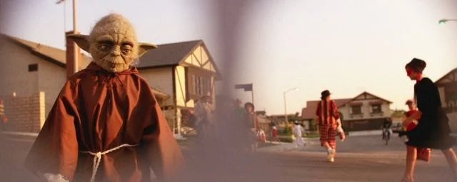 De qualquer forma, a mais famosa dessas referências é musical e fica escondida cerca de 1 hora e 3 minutos no filme de Spielberg. Enquanto as crianças saem para comemorar o Halloween na companhia do ET (escondido sob um lençol branco), o pequeno alienígena vê um transeunte vestido de Yoda e parece reconhecê-lo imediatamente, chegando a exclamar “Casa! Casa!” enquanto ele passa.