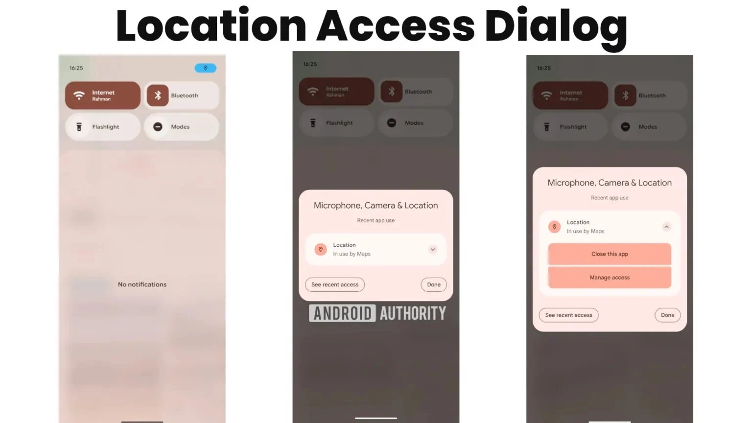 A barra de status agora exibe um indicador de localização expansível. Ao pressioná-lo, o Android exibe diretamente quais aplicativos estão acessando a localização do aparelho através do painel “Microfone”, “Câmera” e “Localização”.
