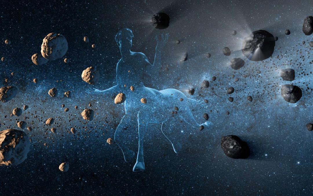 Impressão artística ilustrando os pequenos corpos celestes que fazem parte da família dos centauros. Sabemos agora que a maioria deles não são asteroides temporariamente presos em órbitas instáveis e muito elípticas entre Júpiter e Netuno. Alguns deles, já observados, estão rodeados por pêlos cometários à medida que se aproximam do Sistema Solar interno (em preto à direita da imagem): são, portanto, cometas. © NASA