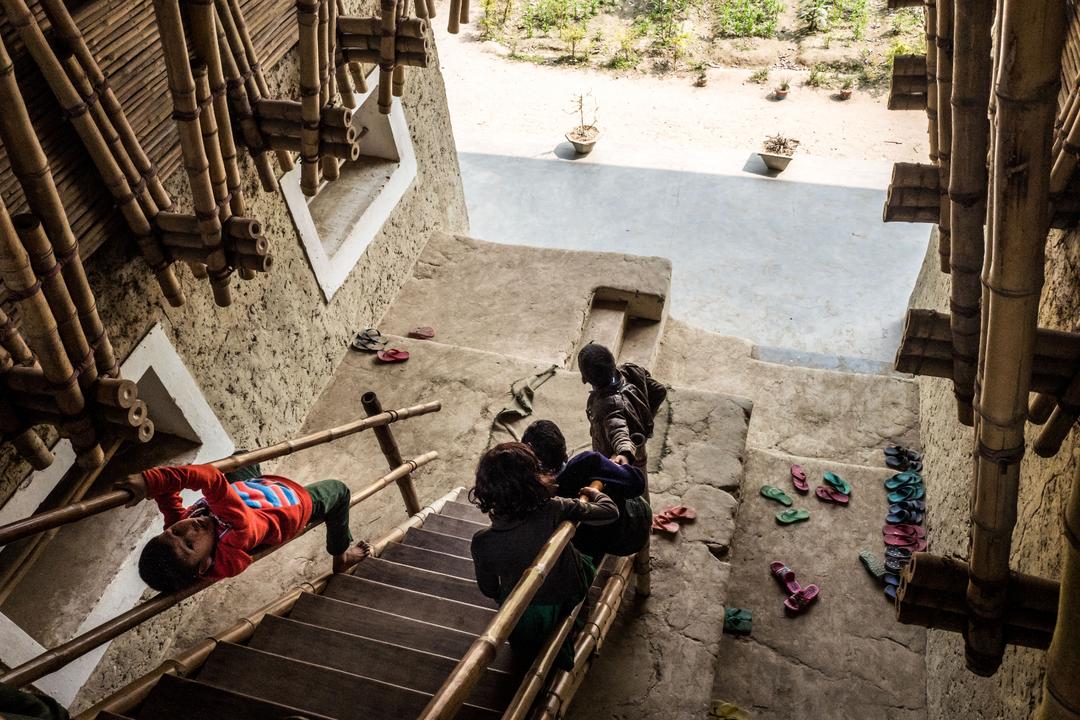 A escola METI, construída com recursos locais como bambu, terra e barro. © Benjamin Staehli