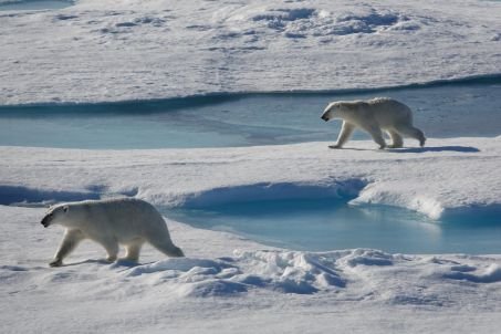 Símbolo da biodiversidade ameaçada, os ursos polares enfrentam múltiplas pressões: aquecimento global – três a quatro vezes maior no Ártico do que a média global -, desaparecimento do seu habitat, poluição química, etc. Ursus maritimus estava enfraquecendo. Na Baía de Baffin, entre a Gronelândia e Nunavut, os ursos estão em más condições físicas, enquanto no Mar de Beaufort (norte do Alasca) e na Baía de Hudson (norte do Canadá), a população diminuiu, e com ela a taxa de natalidade e a taxa de sobrevivência.
