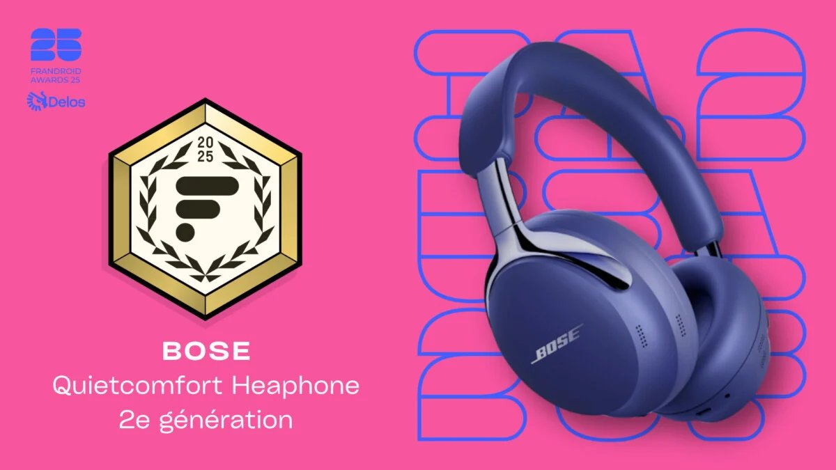 Mas entre todos os modelos que pudemos testar este ano, tivemos que fazer uma escolha dedicando, pela nossa equipa editorial, o Auscultador Bose QuietComfort Ultra (2ª geração). É o nosso vencedor do Frandroid Awards com Delos 2025 para os melhores fones de ouvido Bluetooth.