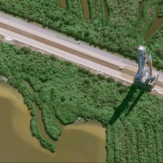 O SLS Artemis II a caminho do LC-39B, avistado por um Pléiades Neo (17 de janeiro de 2026). © Airbus Defesa e Espaço