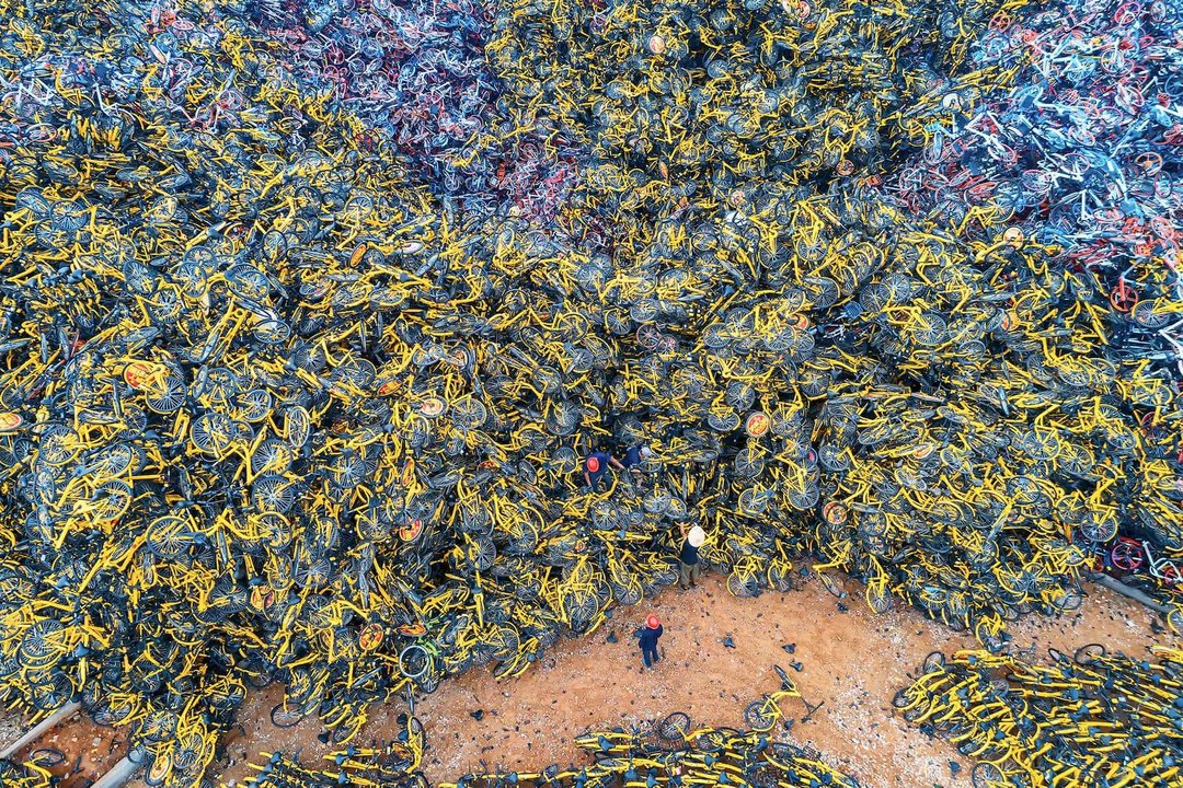 Um depósito de bicicletas ao ar livre, abril de 2018, Tonga, Xiamen. © Wu Guoyong
