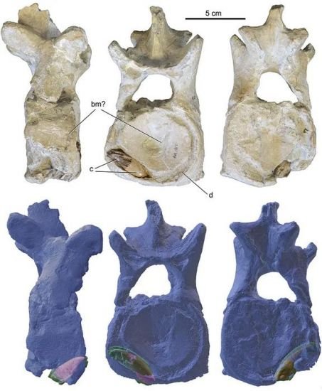 Um dente preso numa vértebra durante quase 85 milhões de anos lembra-nos que os mares do Cretáceo não eram um ambiente pacífico. Ao examinar um espécime preservado nas coleções do Field Museum de Chicago, os pesquisadores identificaram o traço direto de um ataque entre dois grandes predadores marinhos: um Policótiloum plesiossauro com pescoço relativamente alongado, e Xiphactinusum peixe ósseo gigante (parente dos ictiossauros), carnívoro bem conhecido nos mares interiores da América do Norte.