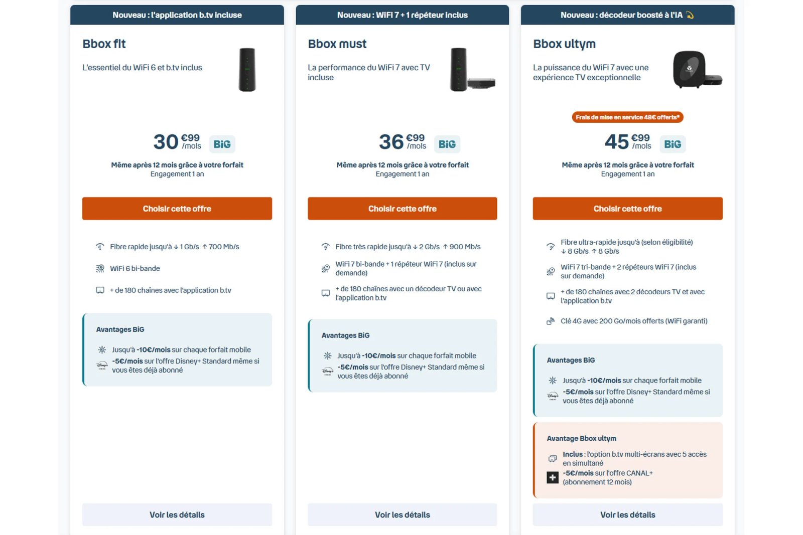 A oferta Ultym obviamente mantém o seu estatuto premium com equipamentos tri-band prometendo velocidades simétricas de 8 Gb/s. Por sua vez, o Bbox Fit permanece logicamente limitado a Wi-Fi 6, o que permanece totalmente consistente para uma oferta básica.