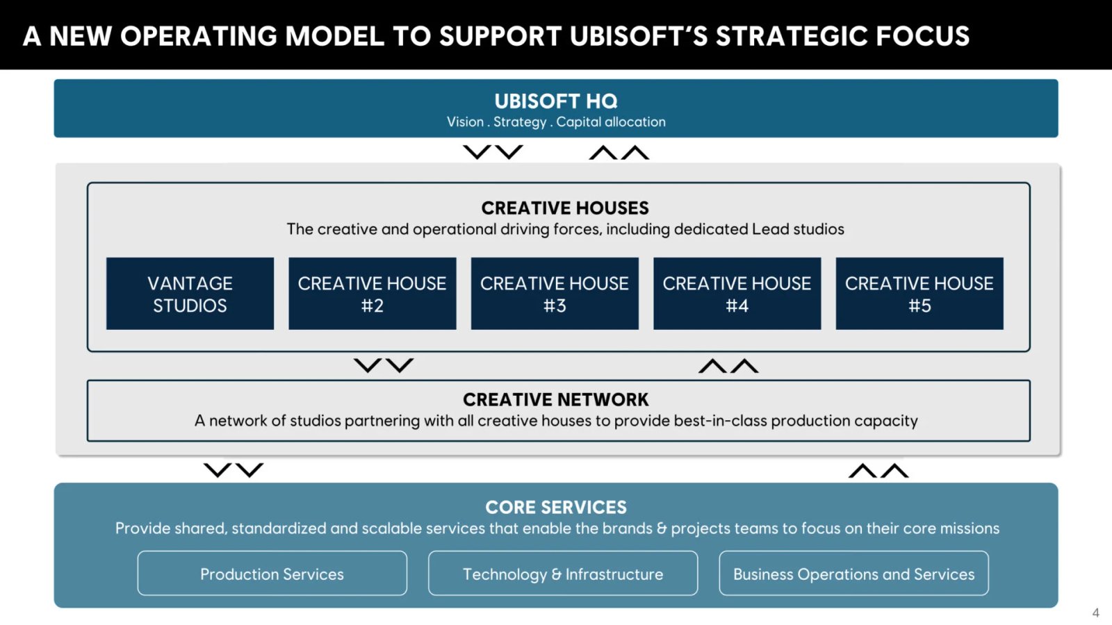 Cada uma destas casas beneficia de uma gestão própria, da responsabilidade pelo seu catálogo (do desenvolvimento à publicação) e também da sua responsabilidade financeira. Em outras palavras: todos devem ser rentáveis. São supervisionados por uma “rede criativa” que irá partilhar know-how entre estúdios e prestar assistência.