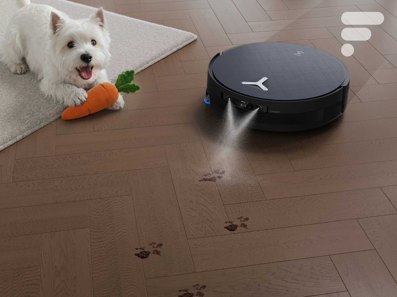 Muito práticos para aspirar e lavar o chão, os aspiradores robotizados podem ter a infeliz tendência de deixar vestígios. Para evitar ficar para trás em relação ao DEEBOT X12 OmniCyclone, a ECOVACS equipou-o com uma inovação marcante: o FocusJet.