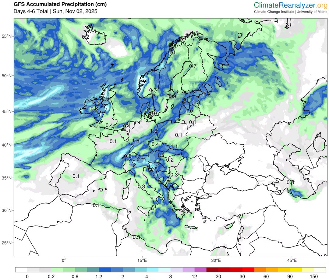 É no Centro-Leste que os acúmulos de chuvas serão mais intensos neste final de semana, principalmente no domingo. © Reanalisador Climático