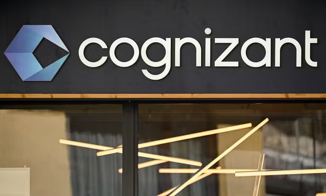 A logomarca da Cognizant, multinacional americana especializada em consultoria e terceirização de serviços de TI, durante o Fórum Econômico Mundial, em Davos (Suíça), 20 de janeiro de 2026.