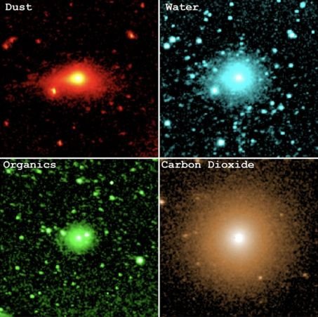 “Agora que a energia do Sol teve tempo de penetrar profundamente no cometa, os gelos intactos enterrados sob a superfície aquecem e entram em erupção, libertando um cocktail de produtos químicos que não foram expostos ao espaço durante vários milhares de milhões de anos.”explica o cosmólogo Phil Korngut, da Caltech, um dos autores do estudo. A assinatura espectral característica dos compostos orgânicos aparece muito claramente nas novas medições SPHEREx. Mesmo que estes dados ainda não permitam distinguir as diferentes substâncias, correspondem claramente a hidrocarbonetos (metano, etano, etc.), álcoois (nomeadamente metanol) ou formaldeído – moléculas que permitem fabricar conjuntos mais complexos como os aminoácidos e devem ter desempenhado um papel central na Terra na química pré-biótica. “No nosso planeta, as moléculas orgânicas constituem a base dos processos biológicos, embora possam ser fabricadas por fenómenos que não envolvem vida.observa a NASA.