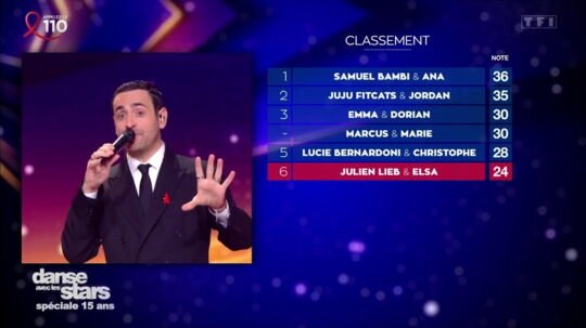 Julien Lieb e Elsa Bois infelizmente não saíram da zona vermelha da noite com os 24 pontos que os condenam ao último lugar da classificação. E reviravolta: por falta de apoio suficiente do público, Emma, ​​apesar de estar entre as favoritas, o enfrentou cara a cara.