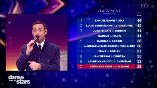 É preciso dizer que Philippe Lellouche não foi páreo para a dança selvagem de diversas personalidades, a começar pelo Juju Fitcats. No topo do ranking desde o início da aventura, a esposa de Tibo InShape somou 67 pontos, superando seus companheiros. Porém, Marcus e Marie Denigot, assim como Emma e Dorian Rollin não ficaram longe com 66 pontos combinados. Por outro lado, a noite foi mais difícil para Stéphane Bern e Calisson Goasdoué com 47 pontos, bem como para Ian Ziering e Denitsa Ikonomova que mal ultrapassaram os 50 pontos. Nesta sexta-feira, 20 de fevereiro, durante um novo bônus de Dançando com as estrelaso ranking sofreu alguma alteração importante?