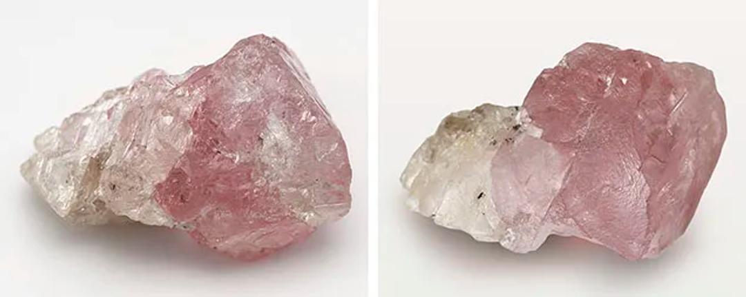 A sua estrutura única apresenta duas zonas distintas: metade rosa e metade incolor. © Tebogo Hambira/GIA
