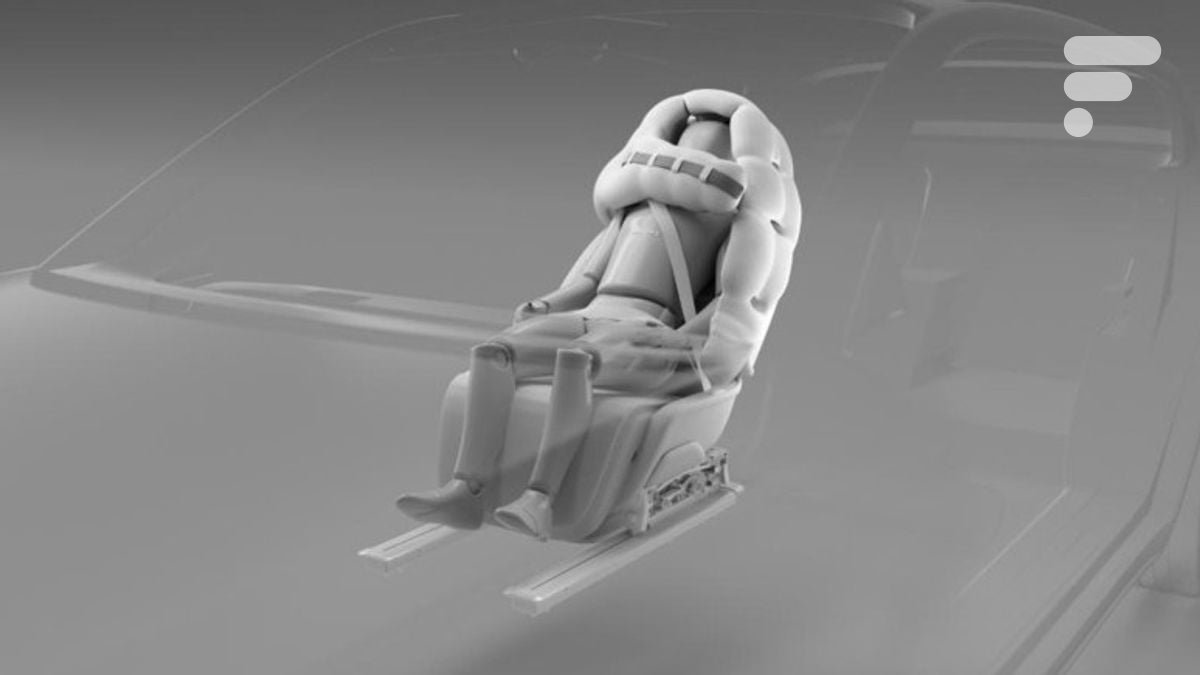 O comunicado de imprensa detalha: em caso de colisão, uma almofada de ar se espalha ao redor do assento, mas acima de tudo das cabeças dos ocupantes. Forma um capacete que envolve a cabeça, o pescoço e o peito do ocupante para evitar, sem dúvida, a famosa chicotada, que por vezes pode ser fatal.