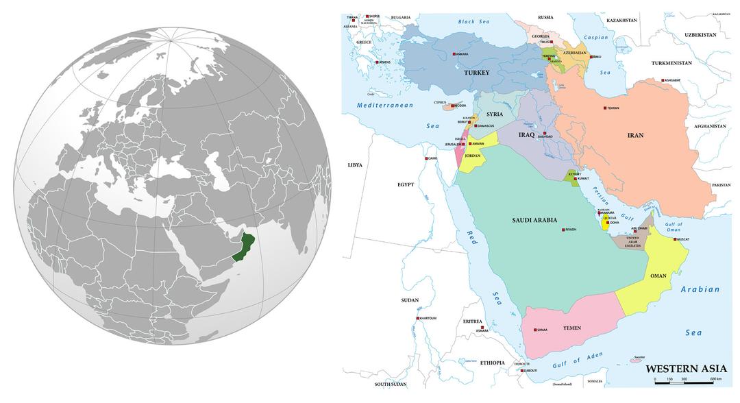 Mapa de localização de Omã e mapa detalhado – © The American – wikimedia commons CC 3.0 – Estoque Lesniewski da Adobe