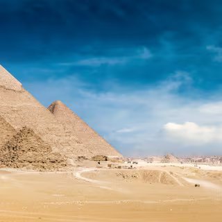 As pirâmides de Gizé fazem parte de um longo alinhamento localizado hoje em uma área desértica e não à beira do Nilo. © kanuman, Adobe Stock