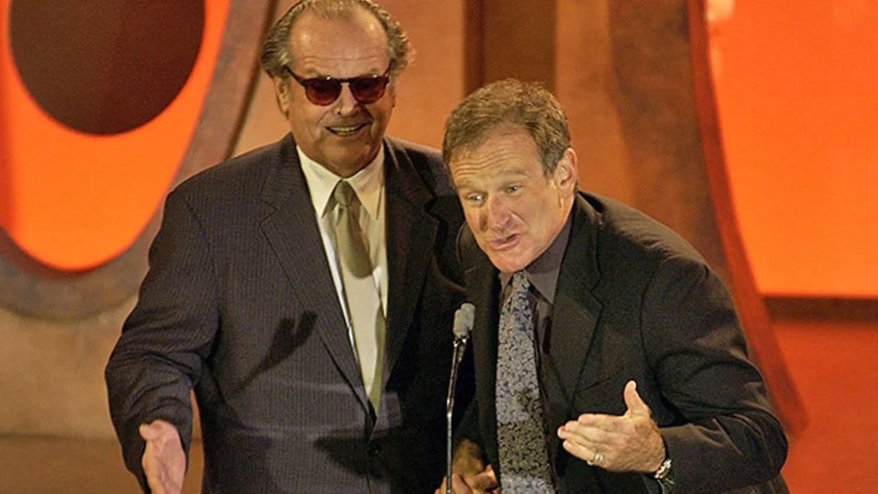 Nicholson começou: “Bem, normalmente não fico tão chapado quando passa na TV… Robin, você poderia subir no palco e… fazer o discurso de aceitação mais engraçado que já fiz?”
