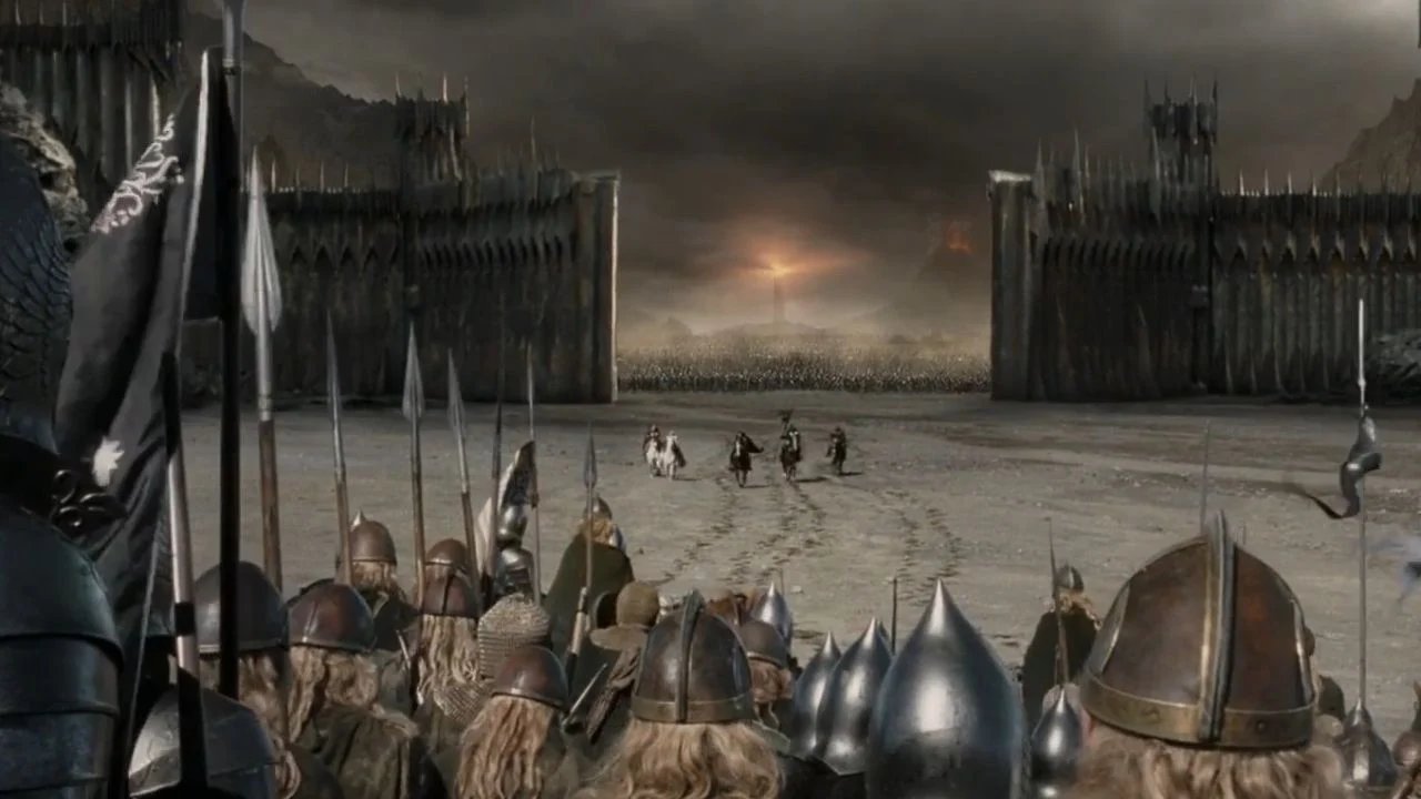 Além disso, esse momento é fundamental na evolução do personagem. Desde A Sociedade do Anel, Aragorn duvidou de si mesmo. Aqui ele finalmente se tornou o rei que deveria ser. O discurso simboliza essa transformação: ele não foge mais do seu destino, ele o abraça plenamente. É também isso que torna esta cena dantesca.