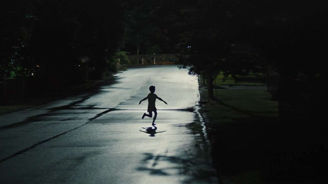 Com os braços estendidos atrás deles, eles atravessam bairros suburbanos desertos correndo com toda a força, ligando detectores de movimento à medida que passam, sombras fugazes e elusivas, seguindo em direção desconhecida. A montagem então acelera, juntando rapidamente imagens das crianças correndo por trás em ritmo frenético, antes do título original do filme, “ARMAS” aparecer na tela com um triângulo no “o”.