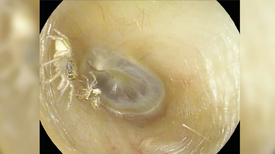 Os médicos que cuidaram dele descobriram uma pequena aranha em seu olhos marrons globulares que estavam se movendo para o canal auditivo externo, o canal que conecta a parte externa do ouvido ao tímpano.