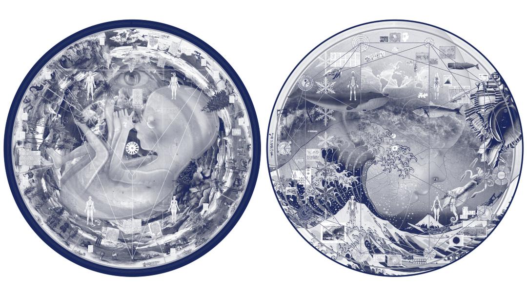 Dois dos 24 discos da cápsula do tempo do projeto” Santuário na Lua ». À esquerda, o disco da “vida” e, à direita, o deus da “água”. © Santuário na Lua
