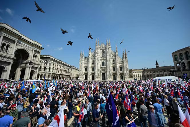 Na Praça Duomo, em Milão, no sábado, 18 de abril, às 15h, três categorias distintas de estrangeiros estavam perto ou longe. Muitos turistas vieram admirar a famosa catedral neste lindo dia de primavera. Nos arredores da joia gótica da cidade lombarda, os trabalhadores imigrantes também aproveitaram o dia de folga para visitar o centro da cidade. E nos bastidores de um palco montado à direita do Duomo, seis representantes dos partidos de extrema-direita gregos, austríacos, letões e flamengos esperaram, menos de uma semana após a derrota eleitoral, na Hungria, do seu padrinho deposto, o primeiro-ministro Viktor Orbán.