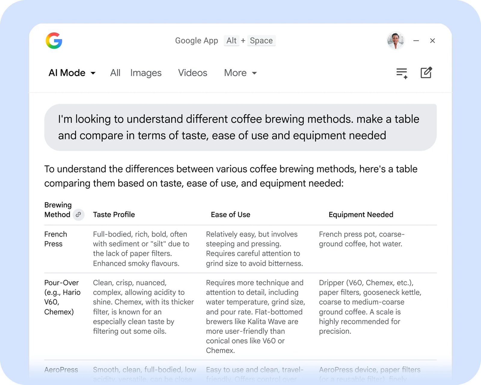 Mas onde esta versão difere dos primeiros testes é na onipresença da inteligência artificial. O aplicativo abre por padrão no “Modo AI” do Google. Isso significa que quando você faz uma pergunta, você recebe uma resposta elaborada pela Gemini, completa com links para ir mais longe, em vez de apenas uma lista de sites. Você pode até conversar com a ferramenta fazendo perguntas de acompanhamento para restringir sua pesquisa. O Google especifica que o “Modo AI” não está disponível em todos os países, em todas as contas e em todos os idiomas.