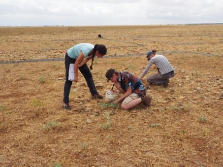Pesquisadores do IMBE estudando os movimentos dos besouros em “coussouls” na planície de Crau. Direitos autorais IMBE