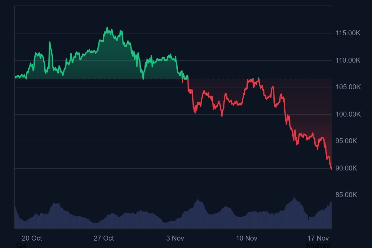 O preço do Bitcoin continua caindo. Semanas após seu recorde acima de US$ 126.000, o Bitcoin caiu para menos de US$ 100.000, antes de cair afundar abaixo de US$ 90.000. Enquanto escrevemos estas linhas, a criptografia está sendo negociada em torno de US$ 89.000. Está até caminhando perigosamente para US$ 88.000. Esta é a primeira vez desde abril que o Bitcoin atinge níveis tão baixos.
