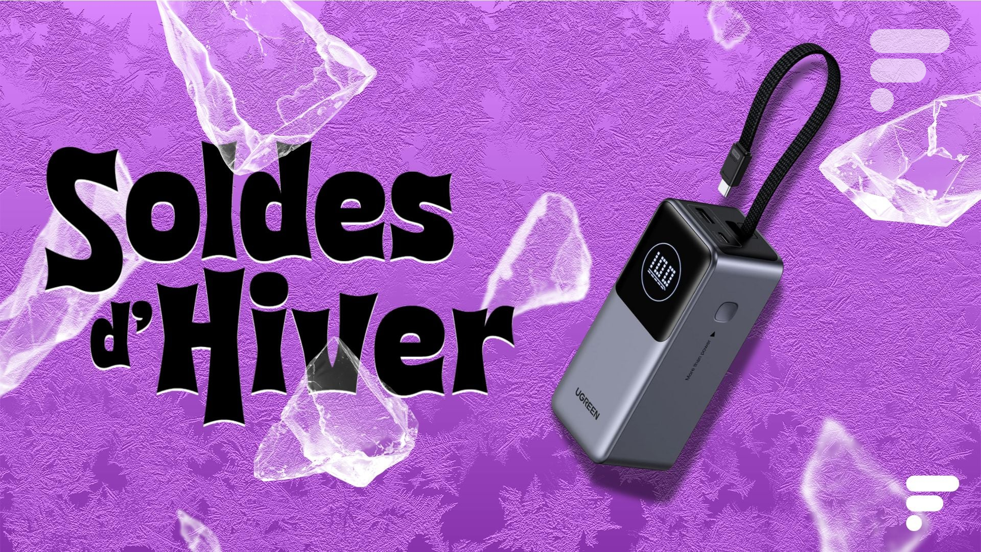 A bateria Ugreen Nexode combina as vantagens, entre a capacidade de 20.000 mAh, a potência de 130 W e o muito prático cabo USB-C. Seu melhor argumento? O seu preço, que vai de 79,99 euros a 49,98 euros na Amazon durante as vendas.