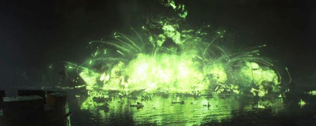 Enquanto uma flecha flamejante corta o ar, disparada por Bronn sob as ordens de Tyrion, o comandante de Stannis entende tarde demais o que está acontecendo. Embebido no fogo grego, combustível impossível de extinguir, o navio solitário pegou fogo e, numa explosão esverdeada, levou consigo metade da frota.
