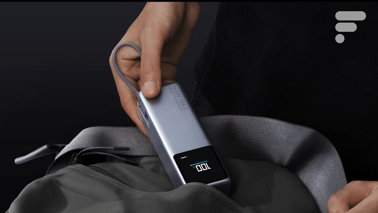 A empresa chinesa teve a boa ideia de integrar uma tela colorida diretamente na bateria. Este display pequeno, discreto, mas perfeitamente legível, está localizado na borda superior do dispositivo. Permite monitorar o estado de carga da bateria em tempo real. Há também um cabo USB-C integrado, armazenado diretamente na lateral do case. Um detalhe bem pensado que evita ter que carregar um cabo extra na bolsa.