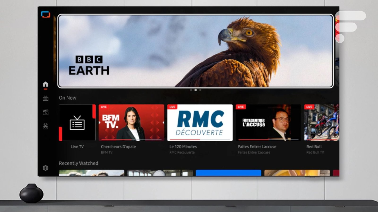 Na parte de áudio, apenas dois alto-falantes de 10 W… mas suporte para Dolby Atmos, Q-Symphony para se comunicar com uma barra de som Samsung e OTS Lite para acompanhar a ação o mínimo possível.